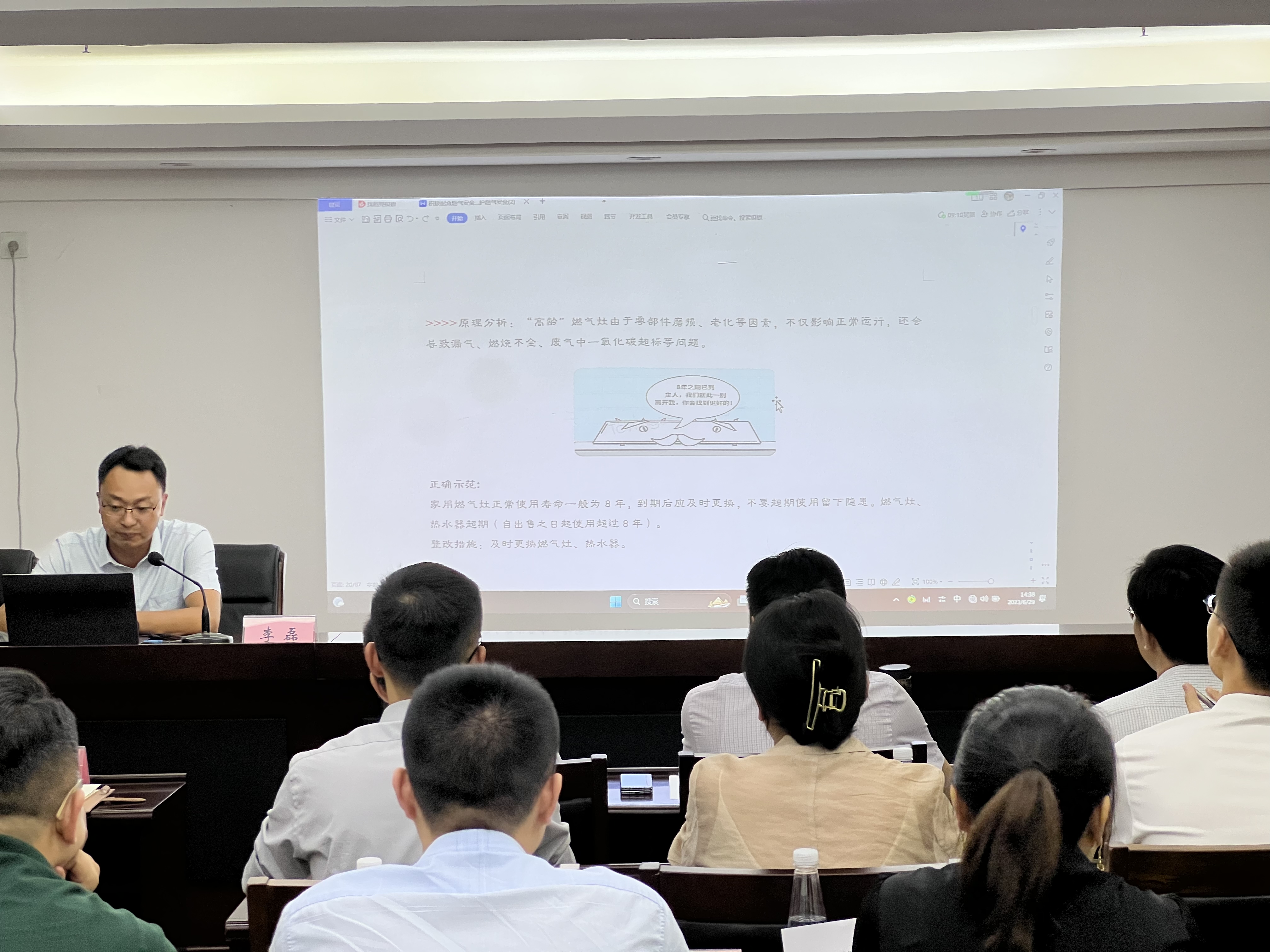會上邀請市公用事業(yè)集團技術(shù)信息中心負責人李磊講解培訓燃氣使用安全知識,并觀看了警示教育片《生命重于泰山》。