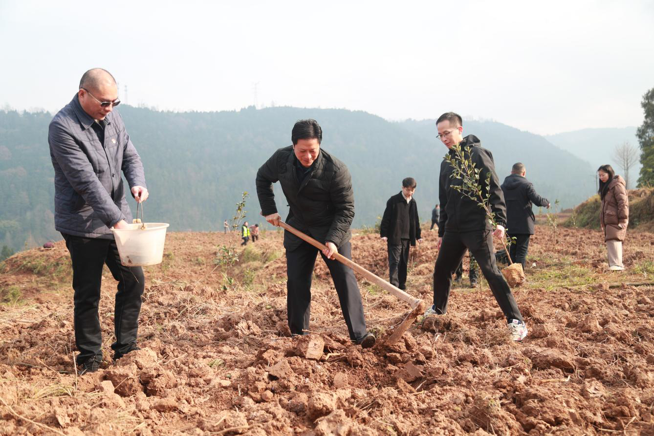 開工儀式后,集團黨委書記、董事長許大政與參加開工儀式的人員共同開展了“我為群眾辦實事”種植油茶實踐活動。