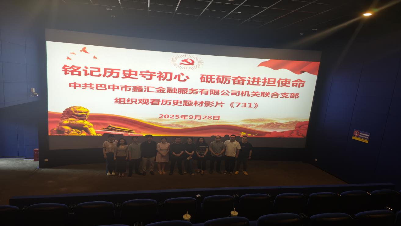 為深入推進(jìn)黨史學(xué)習(xí)教育常態(tài)化長(zhǎng)效化,深刻緬懷革命先烈,弘揚(yáng)愛(ài)國(guó)主義精神,筑牢支部黨員理想信念根基,9月28日,中共巴中市鑫匯金融服務(wù)有限公司機(jī)關(guān)聯(lián)合支部組織全體黨員開(kāi)展了以“銘記歷史守初心 砥礪奮進(jìn)擔(dān)使命”為主題的黨日活動(dòng),集中觀看了愛(ài)國(guó)主義教育題材電影《731》。