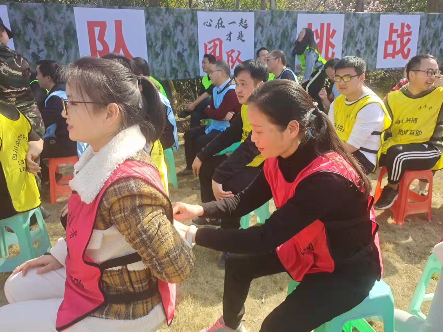 活動開始之前,教官按照報(bào)數(shù)的順序,將全體參與人員隨機(jī)分成了紅、黃、藍(lán)、綠4個(gè)隊(duì),并選出了4名隊(duì)長。4支隊(duì)伍發(fā)揮集體智慧,起隊(duì)名、做隊(duì)旗、想口號、選隊(duì)歌、研究隊(duì)形,并分別進(jìn)行了展示。通過組隊(duì)和兩輪小游戲,職工們打破隔閡、消除尷尬,營造了生動活潑的團(tuán)隊(duì)氛圍,建立了互相信任的基礎(chǔ)。