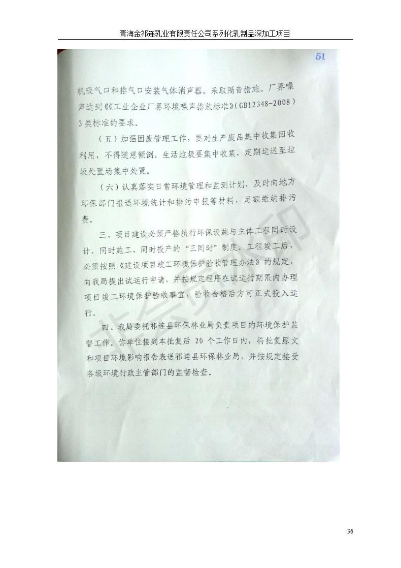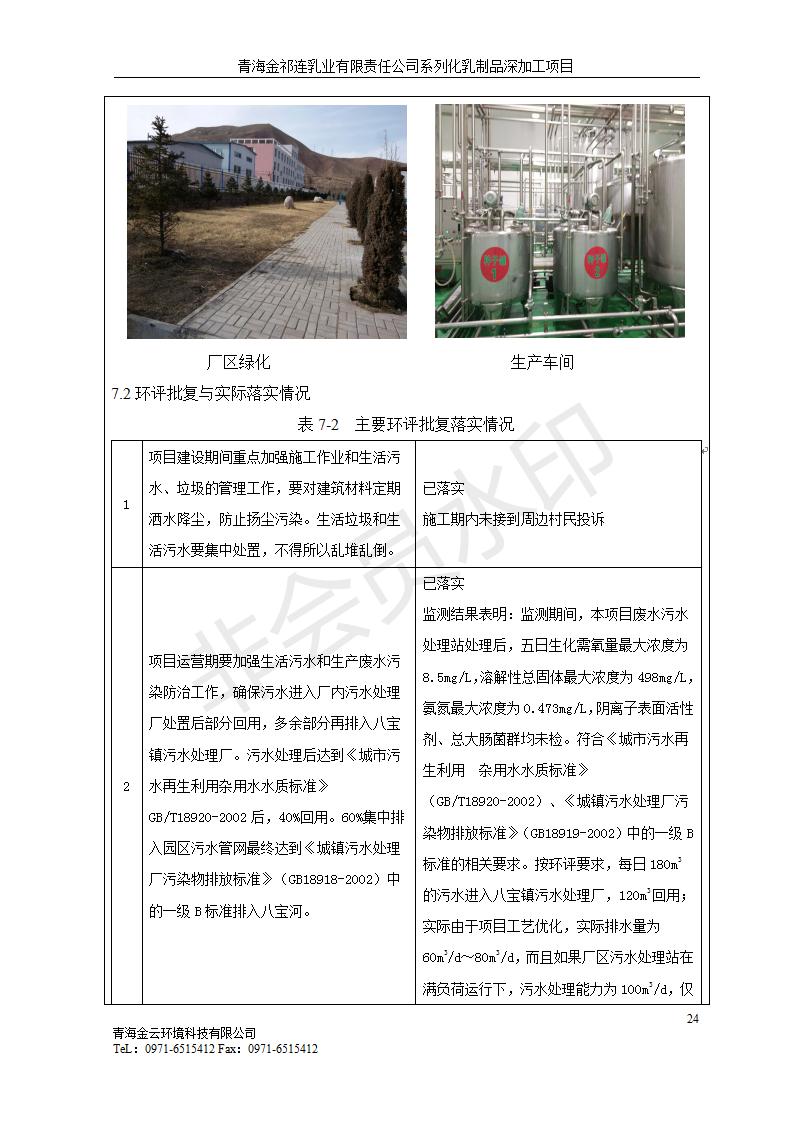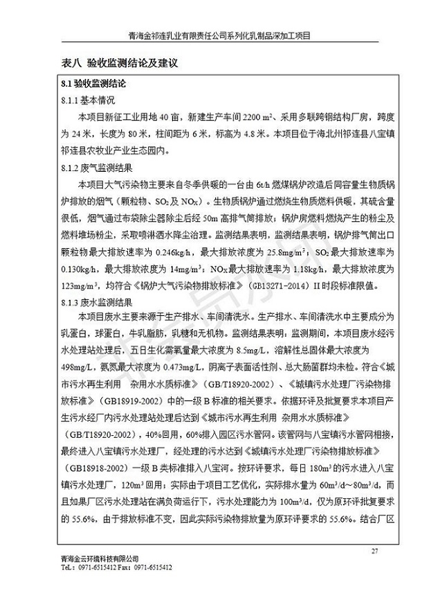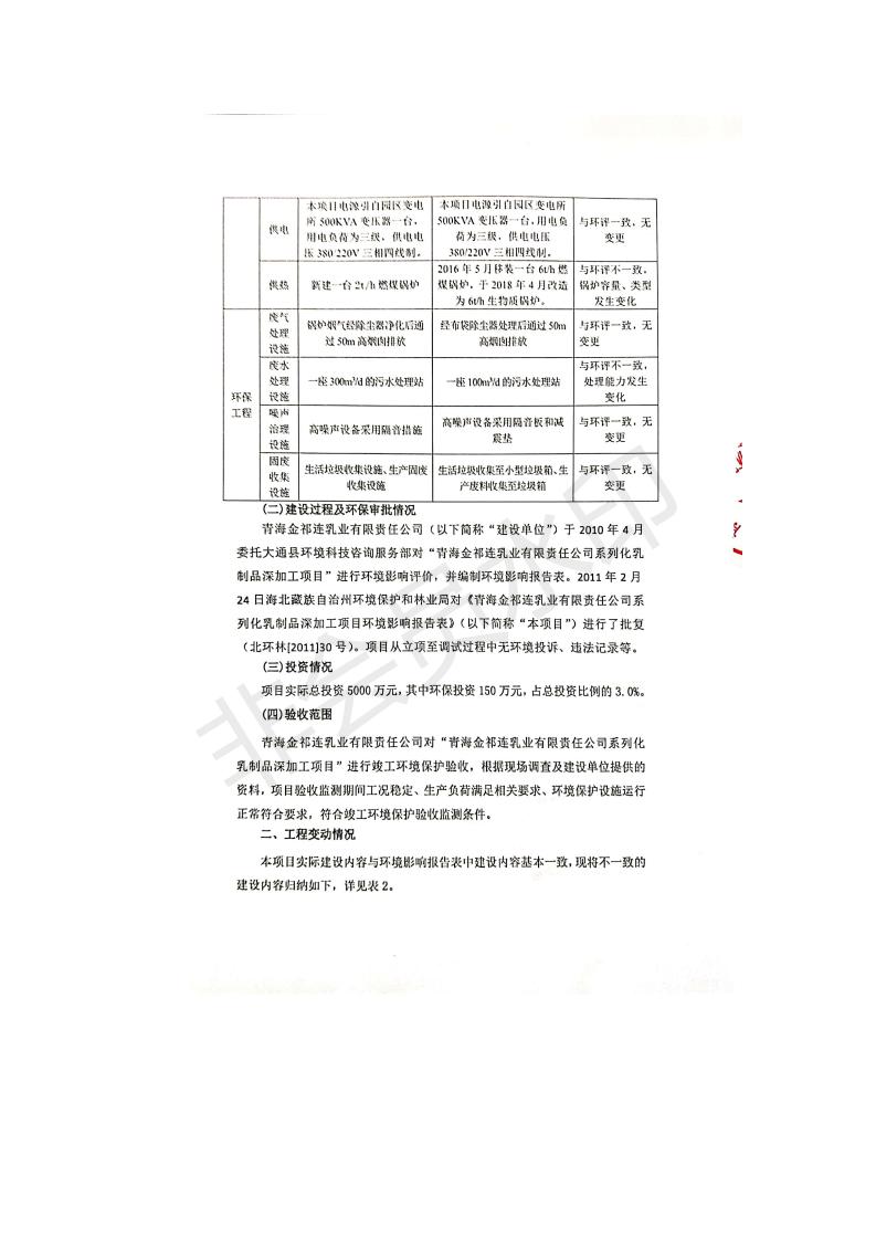根據(jù)中華人民共和國國務(wù)院令第682號(hào)《國務(wù)院關(guān)于修改〈建設(shè)項(xiàng)目環(huán)境保護(hù)管理?xiàng)l例〉的決定》和《建設(shè)項(xiàng)目竣工環(huán)境保護(hù)驗(yàn)收暫行辦法》(國務(wù)院令682號(hào)),青海金祁連乳業(yè)有限責(zé)任公司系列化乳制品深加工項(xiàng)目(包括竣工環(huán)境保護(hù)驗(yàn)收監(jiān)測報(bào)告表和驗(yàn)收意見)公示如下。 一、項(xiàng)目名稱:青海金祁連乳業(yè)有限責(zé)任公司系列化乳制品深加工項(xiàng)目 二、地點(diǎn):海北藏族自治州祁連縣冰溝農(nóng)牧產(chǎn)業(yè)化生態(tài)園區(qū) 三、建設(shè)單位:青海金祁連乳業(yè)有限責(zé)任公司 四、建設(shè)內(nèi)容:本項(xiàng)目新征工業(yè)用地40畝,新建生產(chǎn)車間2200 m2、采用多聯(lián)跨鋼結(jié)構(gòu)廠房,跨度為24米,長度為80米,柱間距為6米,標(biāo)高為4.8米。廠房內(nèi)部根據(jù)產(chǎn)品生產(chǎn)工藝及工序要求分為不同的工作區(qū)域和車間辦公室。建設(shè)有保鮮冷庫800 m2、普通倉庫500m2、污水處理站房160 m2、鍋爐房和配電室159 m2、綜合辦公樓1200 m2、職工食堂和宿舍500 m2、其他輔助用房35 m2、蓄水池100 m2以及與土建工程相關(guān)聯(lián)的水、電、熱官網(wǎng)等輔助設(shè)施。 五、聯(lián)系人:張工 六、聯(lián)系電 話:0971-6515411 七、公示時(shí)間:二〇一九年七月十日至二〇一九年八月六日 公示期間,對(duì)上述公示內(nèi)容如有異議,請以書面形式反饋,個(gè)人須署真實(shí)姓名,單位須加蓋公章。