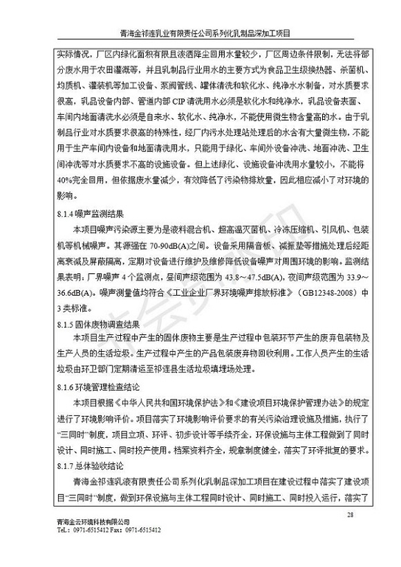 青海金祁連乳業(yè)有限責(zé)任公司系列化乳制品深加工項(xiàng)目竣工環(huán)境保護(hù)驗(yàn)收監(jiān)測報(bào)告表公示發(fā)布日期:(2019-7-10) 點(diǎn)擊次數(shù):2175 |