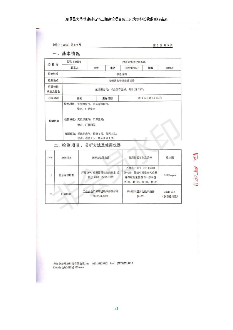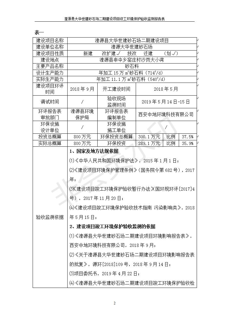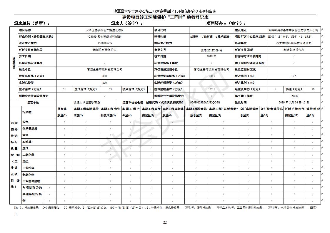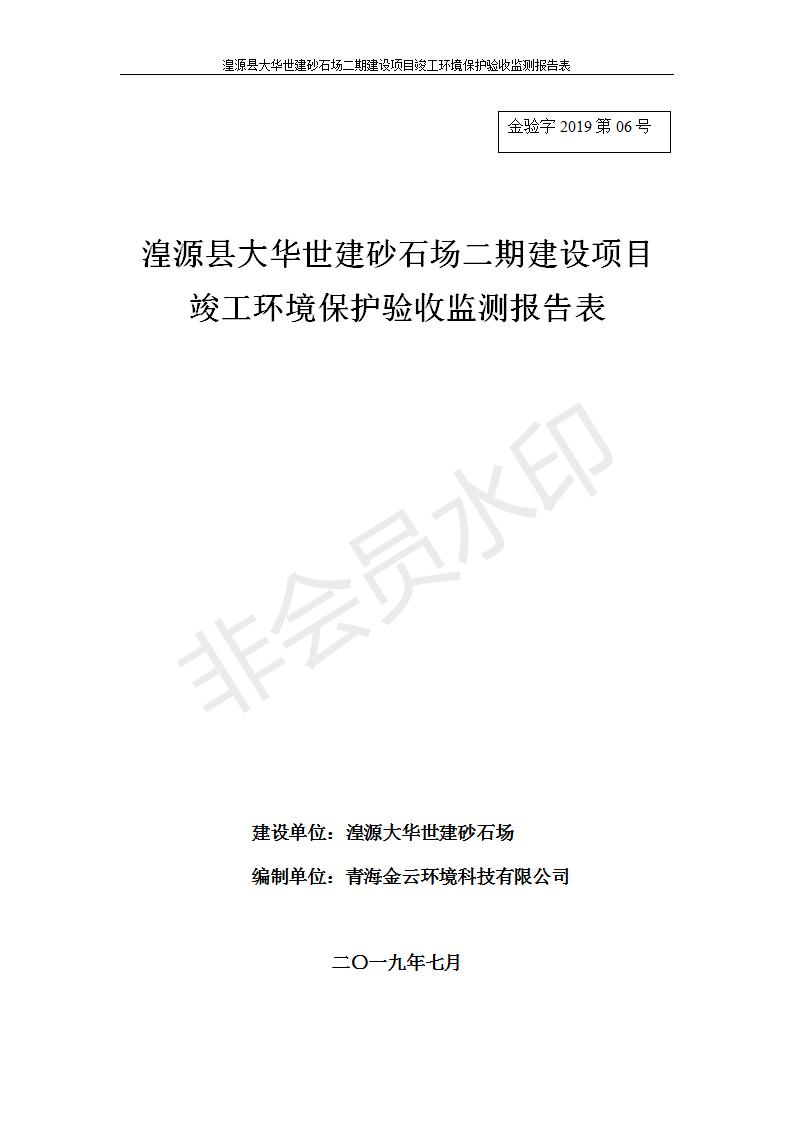 湟源大華世建砂石場湟源縣大華世建砂石場二期建設(shè)項目工環(huán)境保護(hù)驗收監(jiān)測報告表公示發(fā)布日期:(2019-7-25) 點擊次數(shù):2365 |