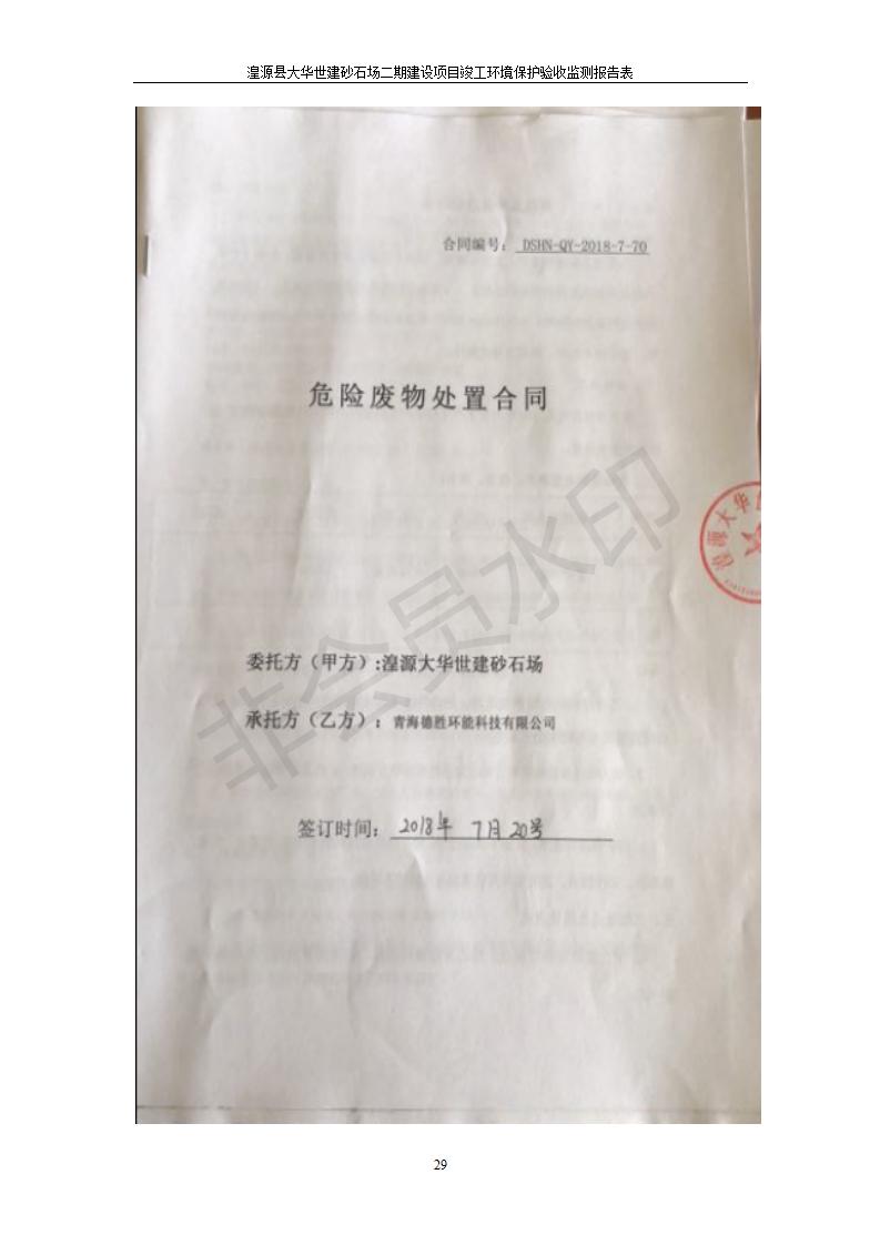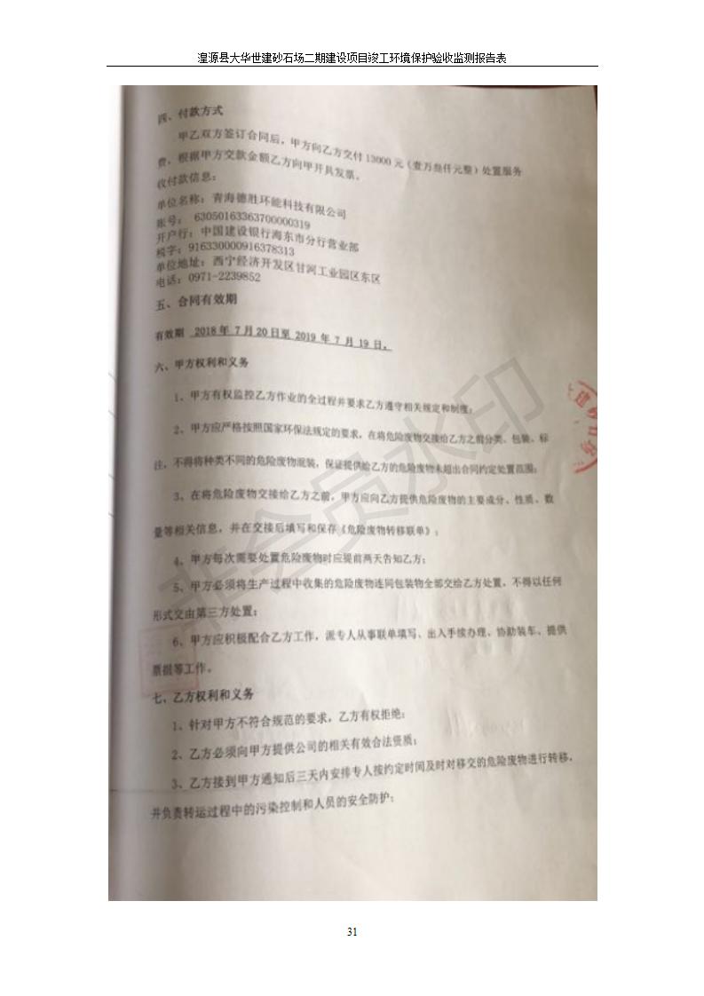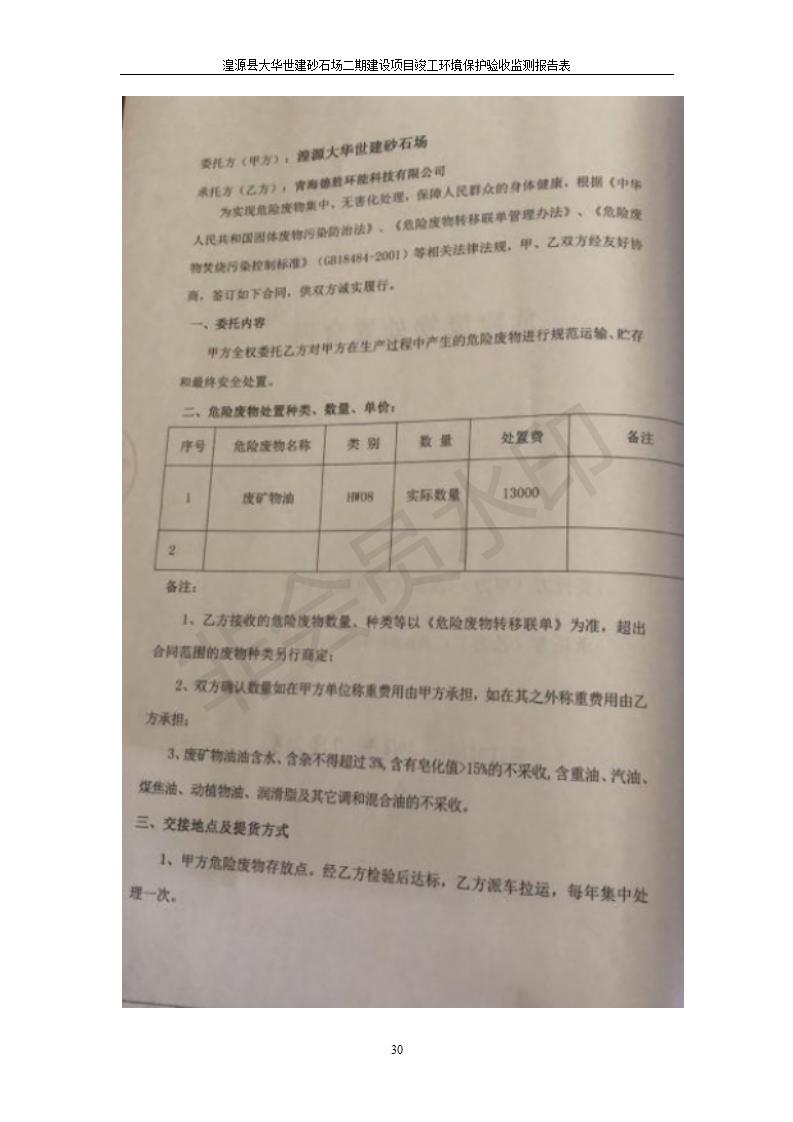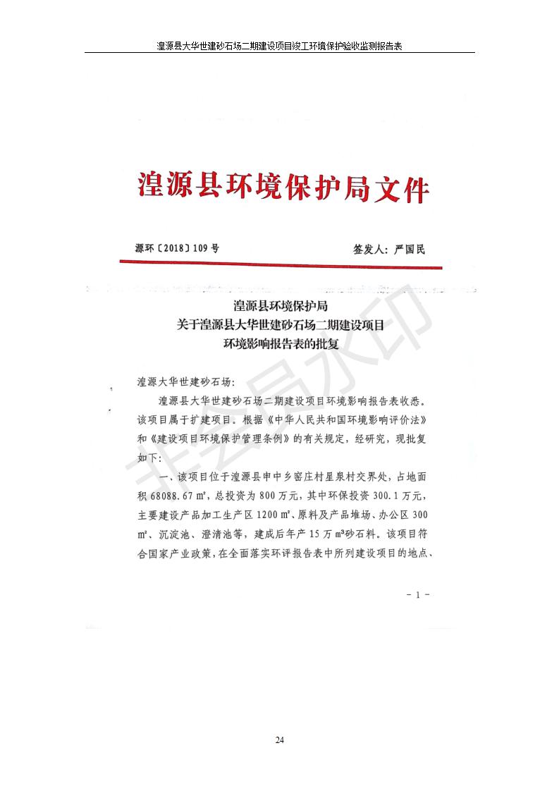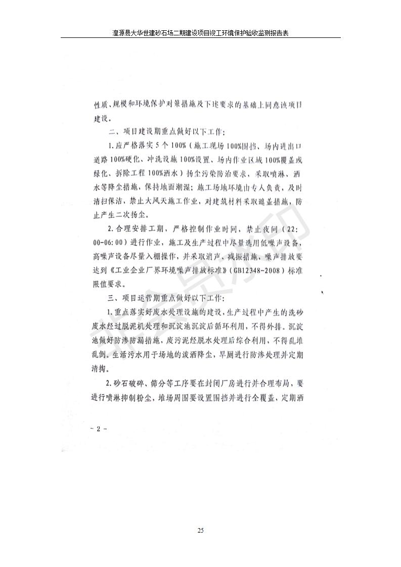 根據(jù)中華人民共和國國務(wù)院令第682號《國務(wù)院關(guān)于修改〈建設(shè)項目環(huán)境保護(hù)管理條例〉的決定》和《建設(shè)項目竣工環(huán)境保護(hù)驗收暫行辦法》(國務(wù)院令682號),湟源大華世建砂石場湟源縣大華世建砂石場二期建設(shè)項目(包括竣工環(huán)境保護(hù)驗收監(jiān)測報告表和驗收意見)公示如下。 一、項目名稱:湟源縣大華世建砂石場二期建設(shè)項目 二、地點:湟源縣申中鄉(xiāng)窯莊村沙崗大小灣 三、建設(shè)單位:湟源大華世建砂石場 四、建設(shè)內(nèi)容:項目主要建設(shè)砂石料產(chǎn)品加工生產(chǎn)區(qū)、原料堆場、產(chǎn)品堆場、辦公區(qū)等。五、聯(lián)系人:張工 六、聯(lián)系電 話:0971-6515411 七、公示時間:二〇一九年七月二十五日至二〇一九年八月二十一日公示期間,對上述公示內(nèi)容如有異議,請以書面形式反饋,個人須署真實姓名,單位須加蓋公章。