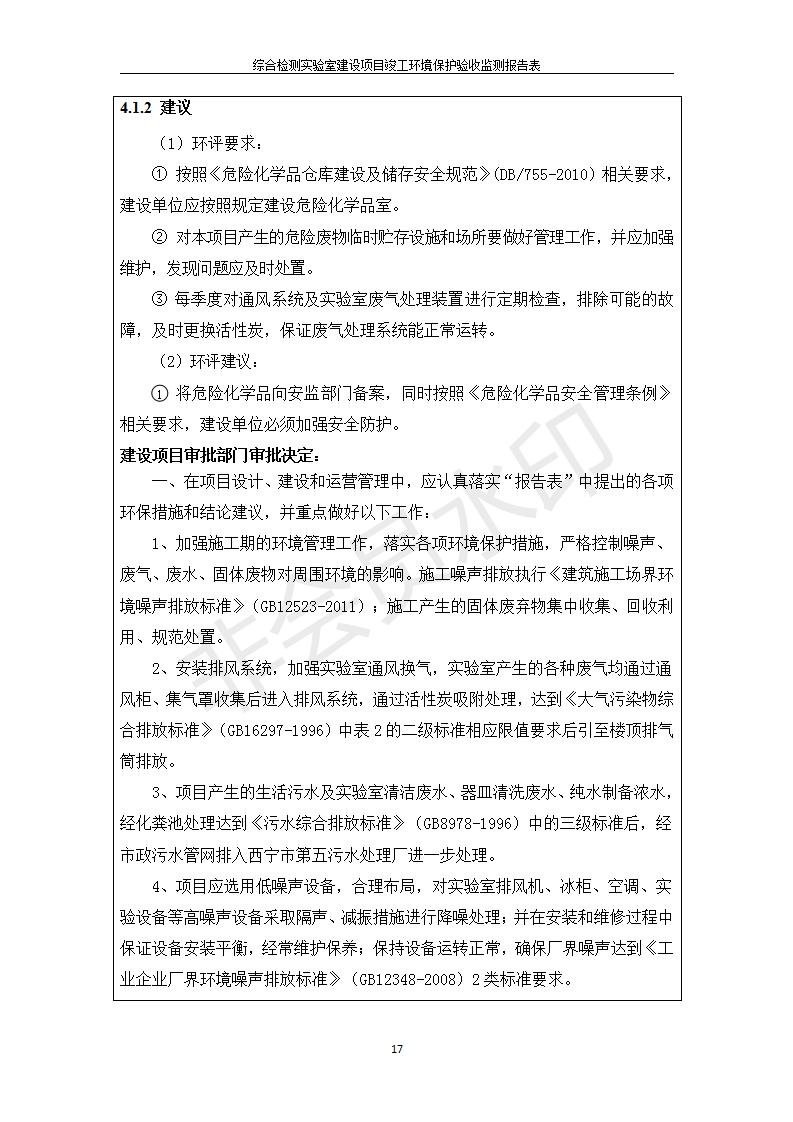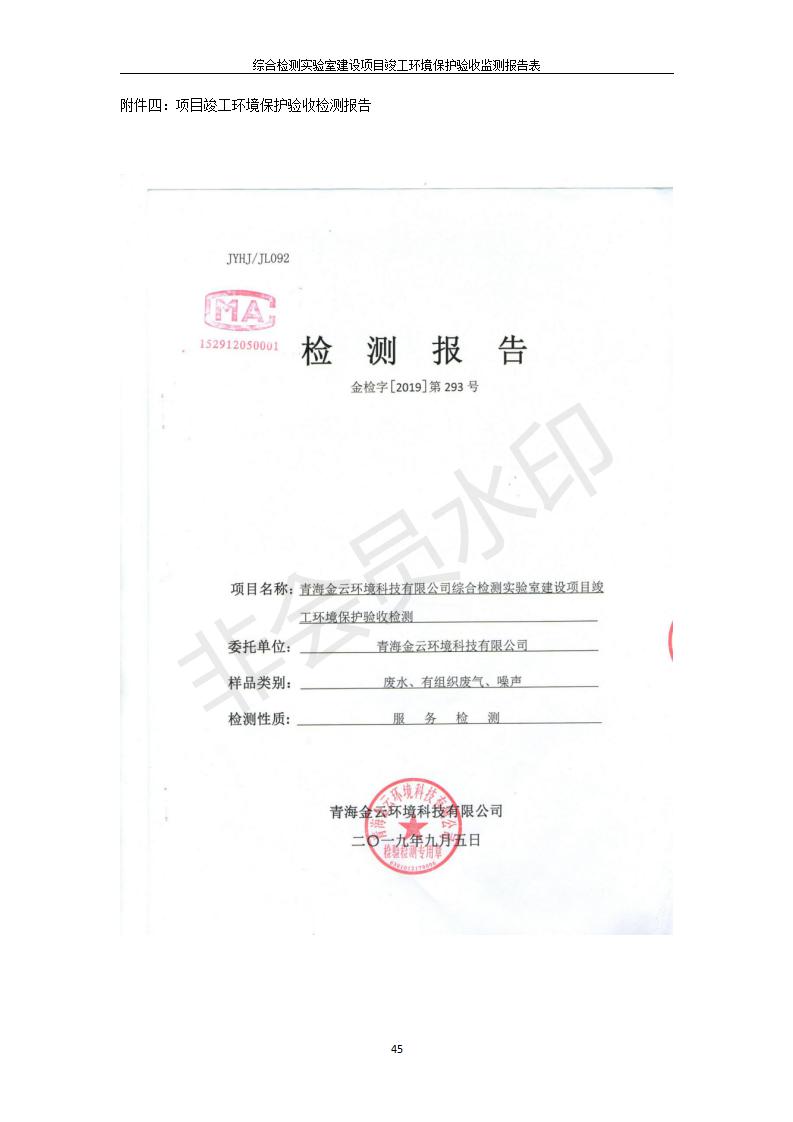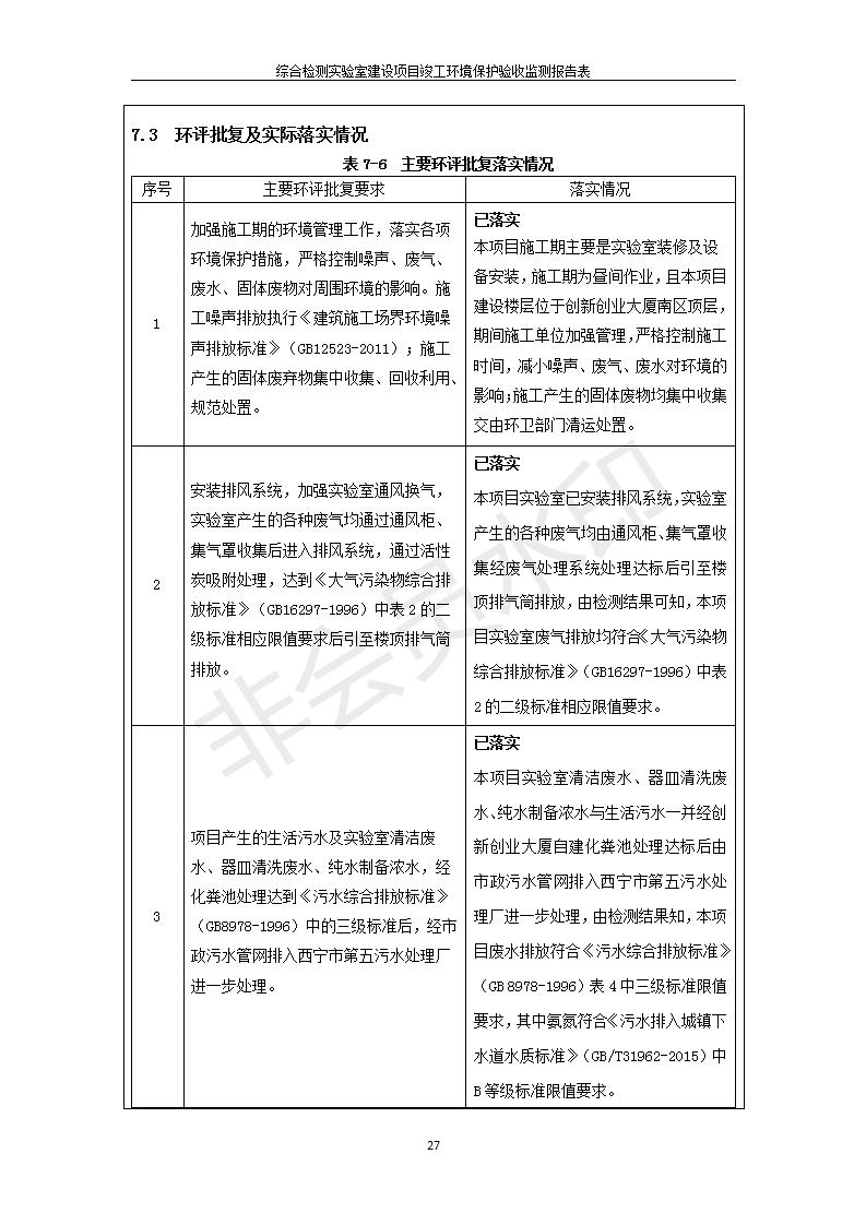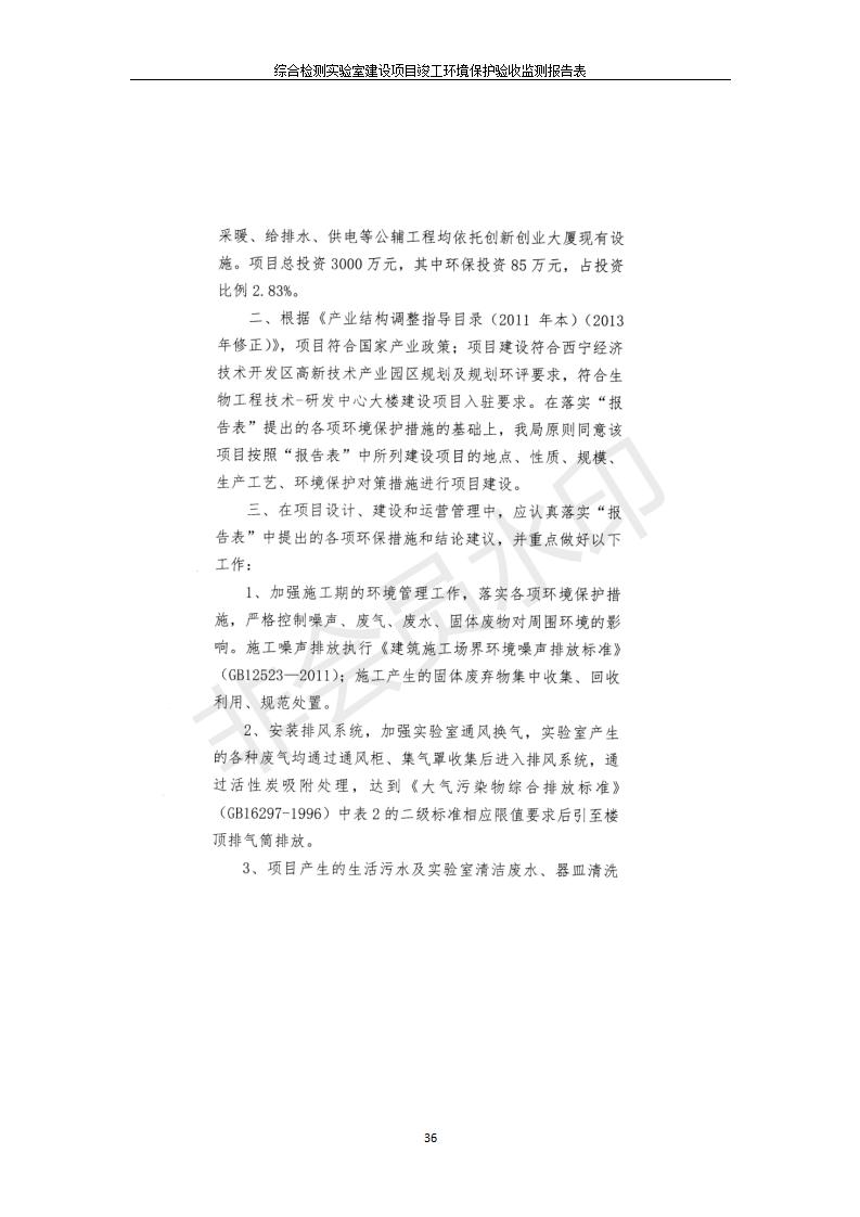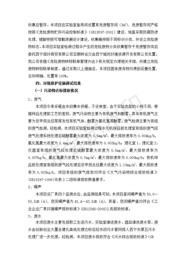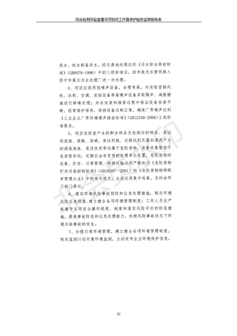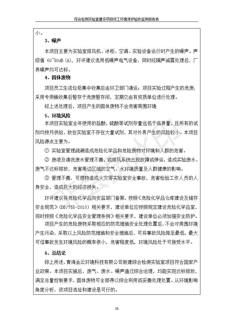 根據(jù)中華人民共和國國務(wù)院令第682號《國務(wù)院關(guān)于修改〈建設(shè)項目環(huán)境保護管理條例〉的決定》和《建設(shè)項目竣工環(huán)境保護驗收暫行辦法》(國務(wù)院令682號),綜合檢測實驗室建設(shè)項目(包括竣工環(huán)境保護驗收監(jiān)測報告表和驗收意見)公示如下。 一、項目名稱:綜合檢測實驗室建設(shè)項目 二、地點:西寧市經(jīng)濟技術(shù)開發(fā)區(qū)生物科技產(chǎn)業(yè)園區(qū)創(chuàng)新創(chuàng)業(yè)大廈南區(qū)15、16層 六、聯(lián)系電話:0971-6515411 七、公示時間:二〇一九年十一月十九日至二〇一九年十二月十六日 公示期間,對上述公示內(nèi)容如有異議,請以書面形式反饋,個人須署真實姓名,單位須加蓋公章。