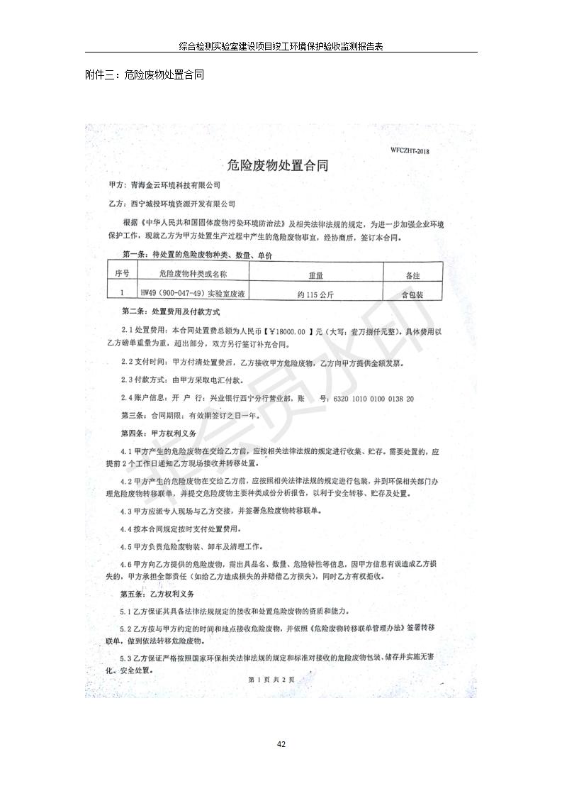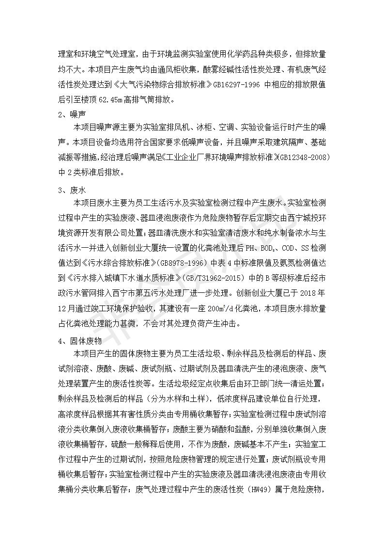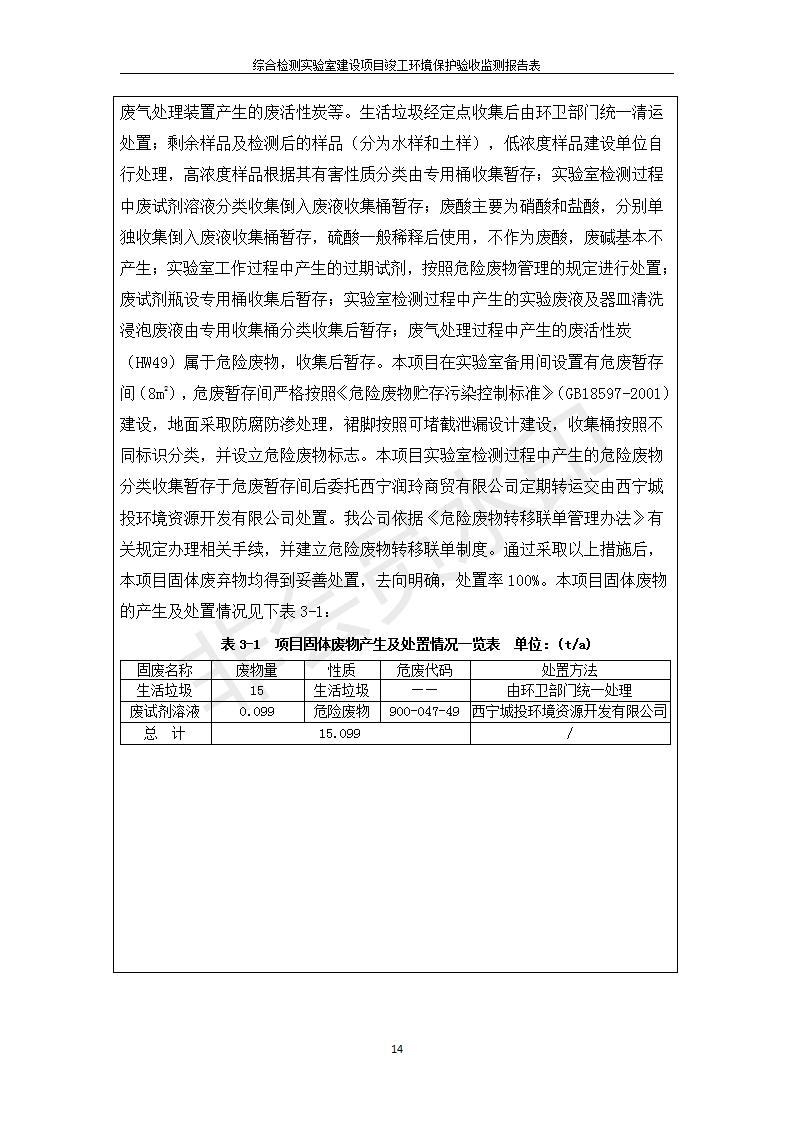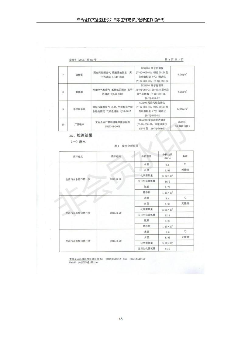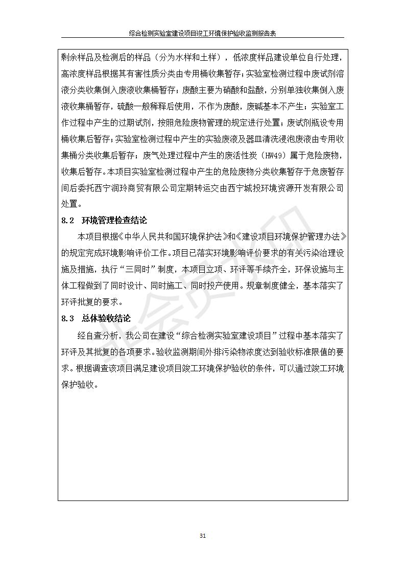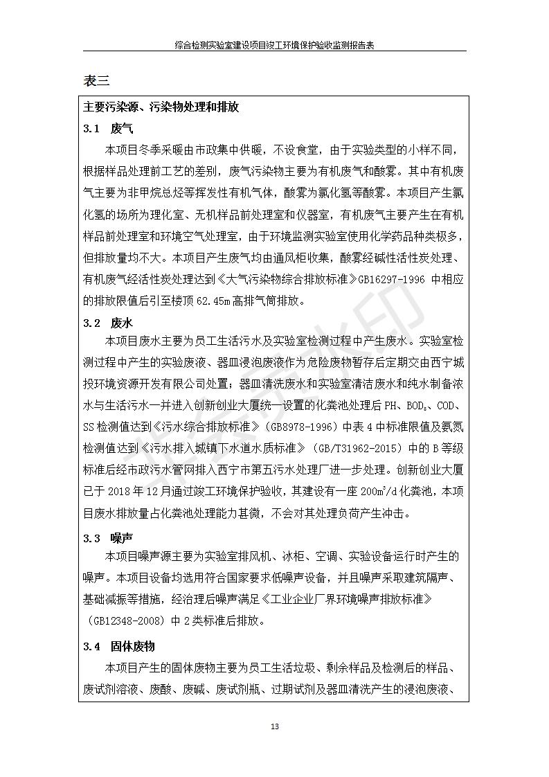 根據(jù)中華人民共和國國務(wù)院令第682號《國務(wù)院關(guān)于修改〈建設(shè)項目環(huán)境保護管理條例〉的決定》和《建設(shè)項目竣工環(huán)境保護驗收暫行辦法》(國務(wù)院令682號),綜合檢測實驗室建設(shè)項目(包括竣工環(huán)境保護驗收監(jiān)測報告表和驗收意見)公示如下。 一、項目名稱:綜合檢測實驗室建設(shè)項目 二、地點:西寧市經(jīng)濟技術(shù)開發(fā)區(qū)生物科技產(chǎn)業(yè)園區(qū)創(chuàng)新創(chuàng)業(yè)大廈南區(qū)15、16層 六、聯(lián)系電話:0971-6515411 七、公示時間:二〇一九年十一月十九日至二〇一九年十二月十六日 公示期間,對上述公示內(nèi)容如有異議,請以書面形式反饋,個人須署真實姓名,單位須加蓋公章。